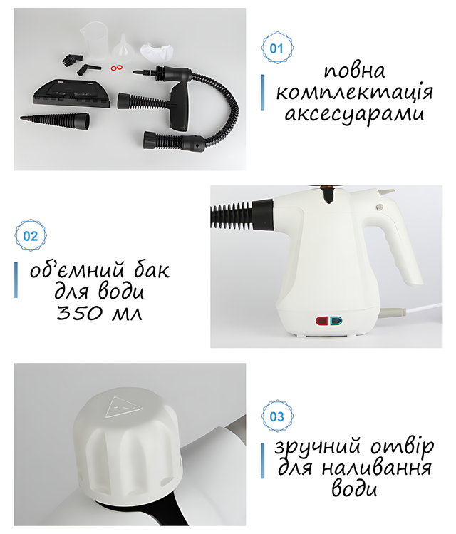 - Высокое качество: Изготовлен из высококачественного АБС-пластика, не выделяет химических паров и осадков, используется только пар для очистки;