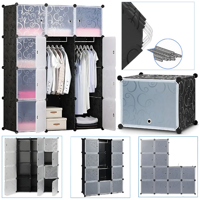 Модульный шкаф органайзер для одежды 10166 из 12 пластиковых модулей, шкаф конструктор, 110 х 37 х 145 см