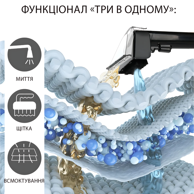 - ✔ Моет и пылесосит одновременно — одно движение, два эффекта
