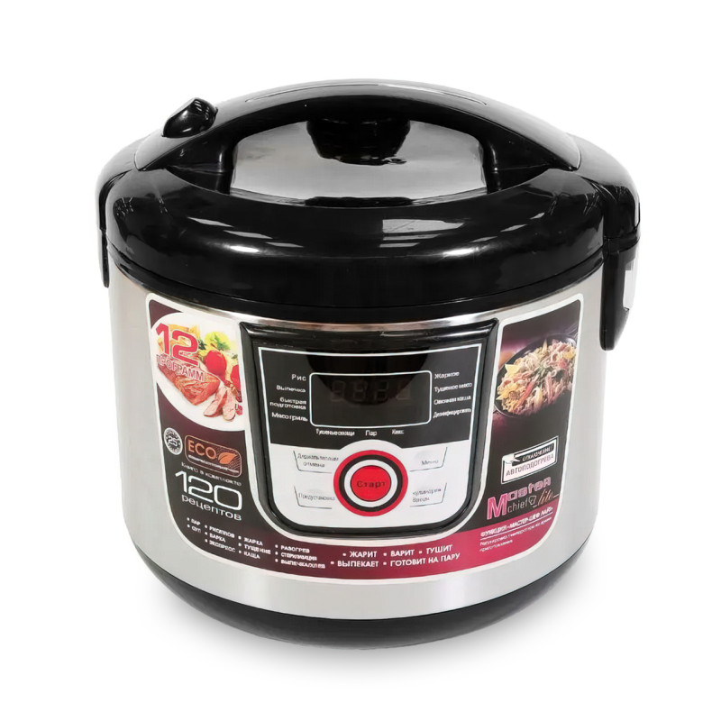 - Программы: рис, плов, варка, экспресс, суп, разогрев, пар, выпечка/хлеб, каша, тушение, жарка, стерилизация;