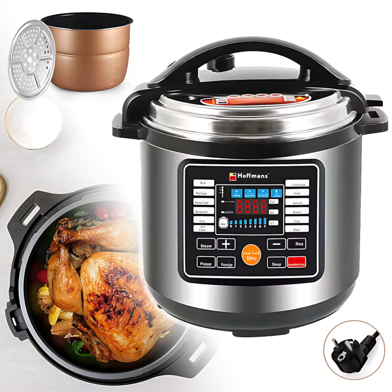 Мультиварка-скороварка Hoffmans HM-720 — мощный и вместительный кухонный прибор, созданный для тех, кто ценит вкусную домашнюю еду. Без лишних усилий. Благодаря объему чаши 12 литров и мощности 2000 Вт, она идеально подойдёт для больших семей, приёмов гостей или приготовления еды впрок.