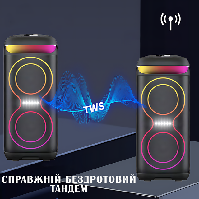 Атмосфера? Светомузыка делает своё дело! Это не просто мигающие огоньки, а настоящая дискотека у вас дома. Забыли зарядить колонку? Спокойно, аккумулятор на 3000 мАч держит до 12 часов без перерыва. Утром разрядитесь только вы, а колонка ещё будет готова играть.