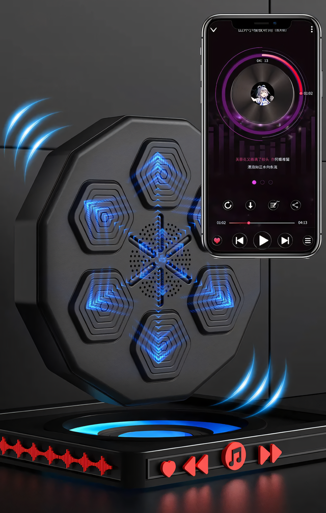 Музыкальная интеллектуальная боксерская панель тренажер с LED подсветкой, Bluetooth, 40х40х7.5 см