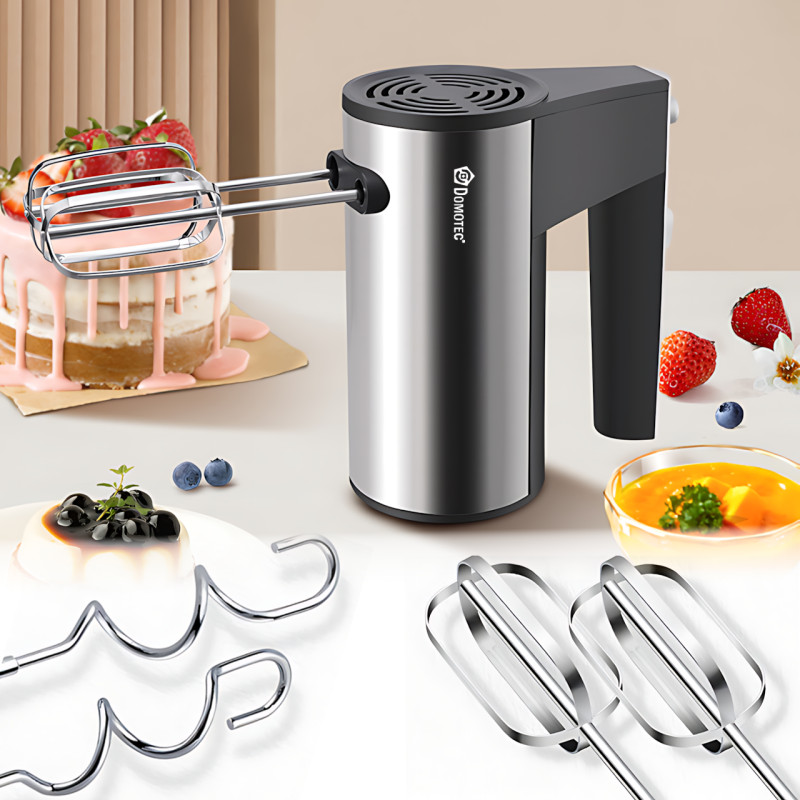 Миксер ручной Domotec R-6690 600W, 5 скоростей + Турбо, металлический корпус, венчики и крюки