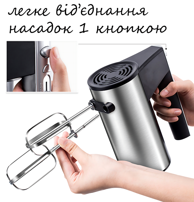 - 🌀 Две пары насадок: венчики для взбивания и крюки для замеса.