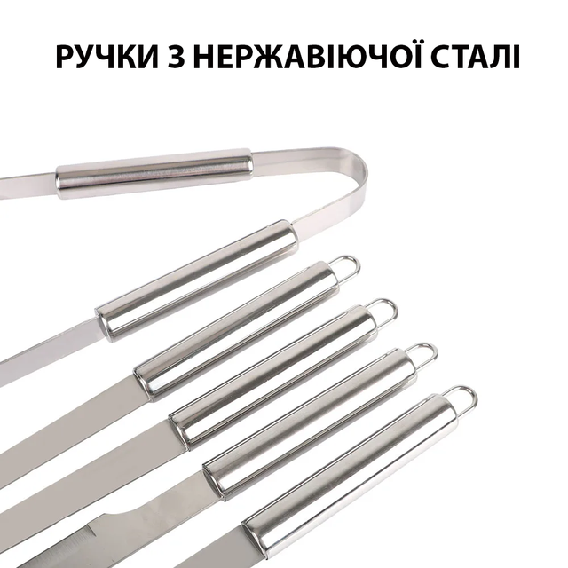 - Практичность: Включает в себя все необходимые инструменты для приготовления шашлыка и других блюд на гриле или барбекю, что делает его идеальным выбором для любителей пикников и отдыха на свежем воздухе;