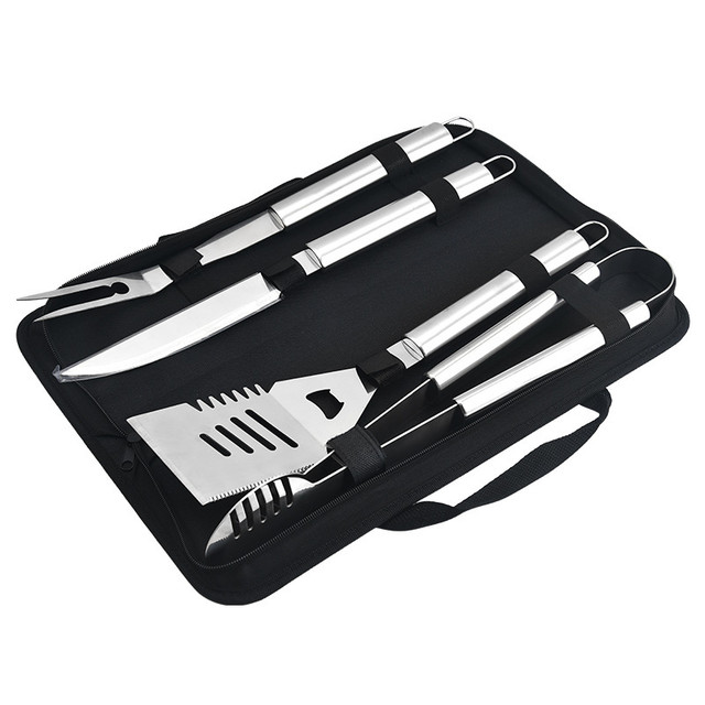 Набор для барбекю из 4 предметов, нержавеющий металл, в сумке-чехле на молнии лопатка, вилка, нож, щипцы
