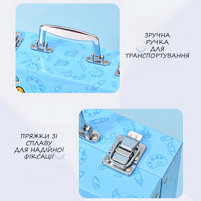 Набор юного художника в голубом чемоданчике Art Set на 82 предмета — это прекрасный комплект для развития детского творчества. Внутри набора находятся разнообразные инструменты для рисования, такие как цветные карандаши, маркеры, акварельные краски и кисти. Чемоданчик изготовлен из прочного пластика с металлическими застёжками, что обеспечивает надёжное хранение и транспортировку. Лёгкий вес и удобная ручка делают его идеальным для использования как дома, так и в поездках. Яркий дизайнерский рисунок на кейсе привлекает внимание и вдохновляет на творчество. Набор предназначен для детей от трёх лет, стимулирует развитие художественных навыков с раннего возраста.