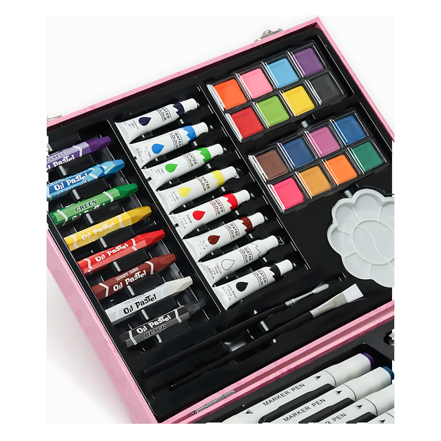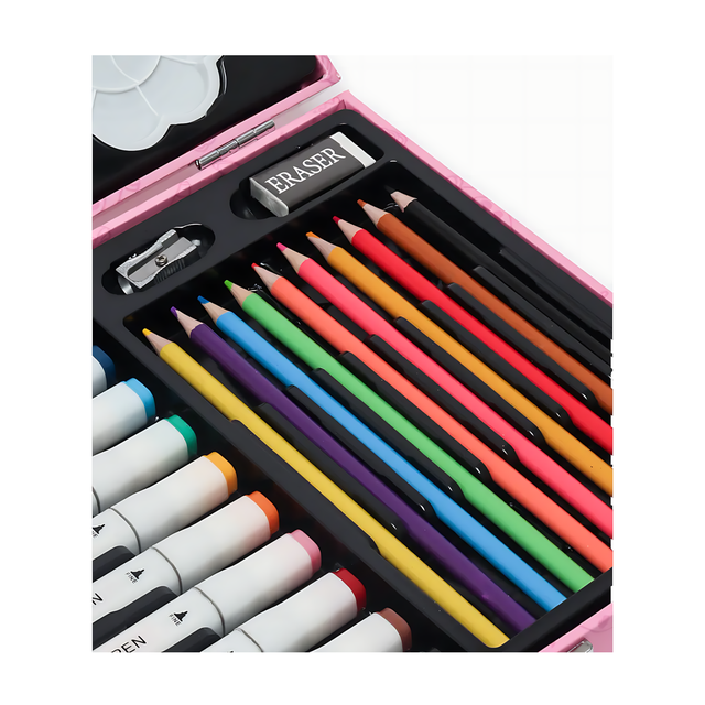 Набор для рисования Art Set, карандаши, маркеры, краски в пластиковом розовом чемоданчике, 82 предмета