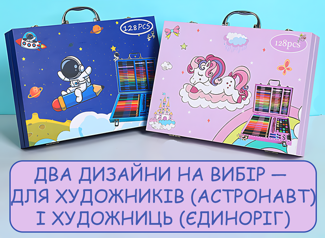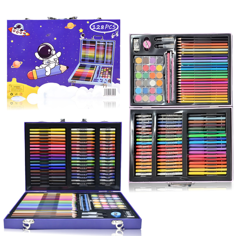 Если ребёнок мечтает рисовать, сочинять миры, превращать простые линии в чудеса — этот набор для творчества из 128 предметов станет его личной волшебной мастерской! 💫
