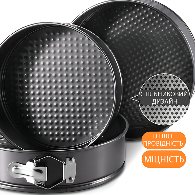 - 3 формы в наборе — оптимальные размеры для разных задач (24, 26, 28 см)