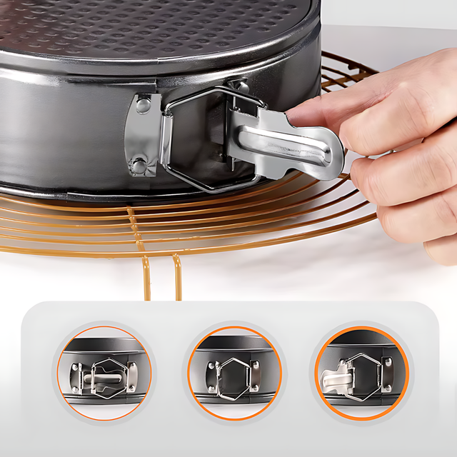 Каждая форма изготовлена из углеродистой стали с рельефным антипригарным покрытием. Которое не требует масла или пергамента. Благодаря разъёмной конструкции с надёжной металлической защёлкой, извлечение готового изделия происходит легко. Без деформаций и лишних усилий.