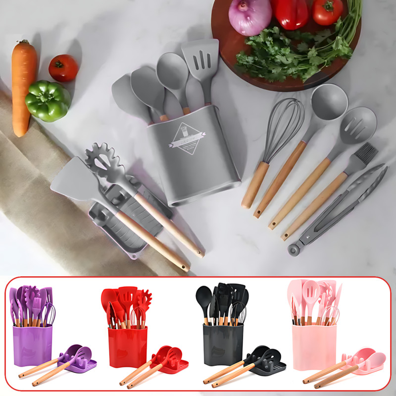 Готовка станет не просто рутиной, а настоящим гастрономическим шоу! Этот набор — как супергерой среди кухонных помощников: 12 незаменимых предметов, стильное ведерко для хранения и удобная подставка. Всё под рукой, всё организовано, никаких хаотично разбросанных приборов и пятен от теста по всему столу!