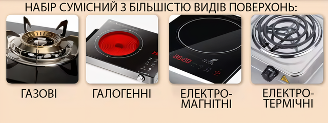 - Универсальная совместимость: Подходит для всех типов плит, включая газовые и индукционные, что делает его универсальным выбором для любой кухни;