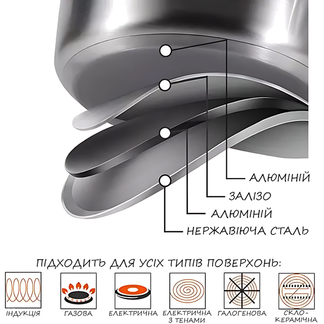 - Совместимость: Подходит для всех видов плит (газовых, электрических, индукционных, керамических);