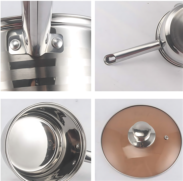- Компактный и практичный набор: Включает кастрюли, сотейник и сковороду, что позволяет готовить разнообразные блюда.