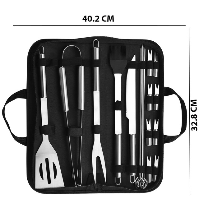 Набор из нержавеющей стали для барбекю, 20 предметов + сумка-чехол из текстиля на молнии, набор для гриля
