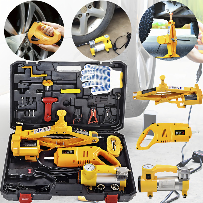 Набор ZS3SJ-BC 12V, авто комплект 3 в 1 электродомкрат (3 тонны) + электрогайковёрт + компрессор
