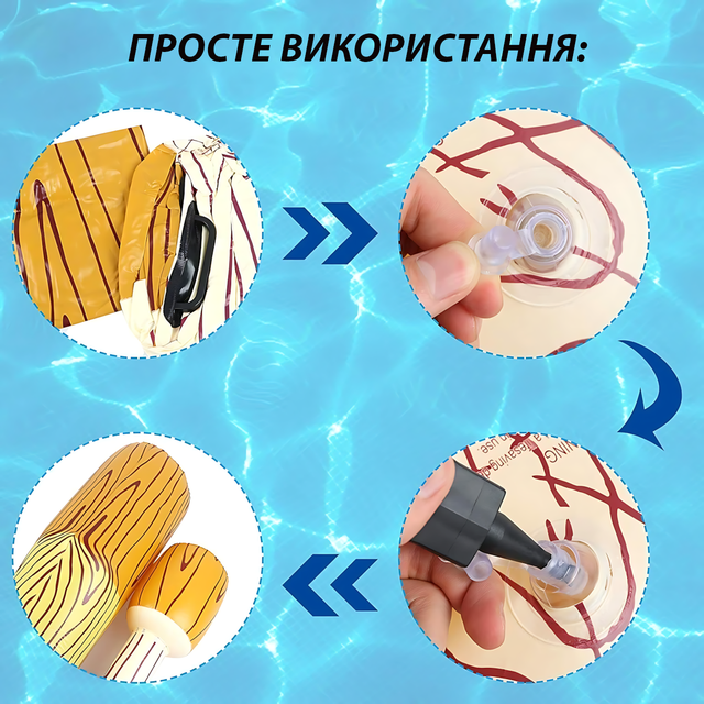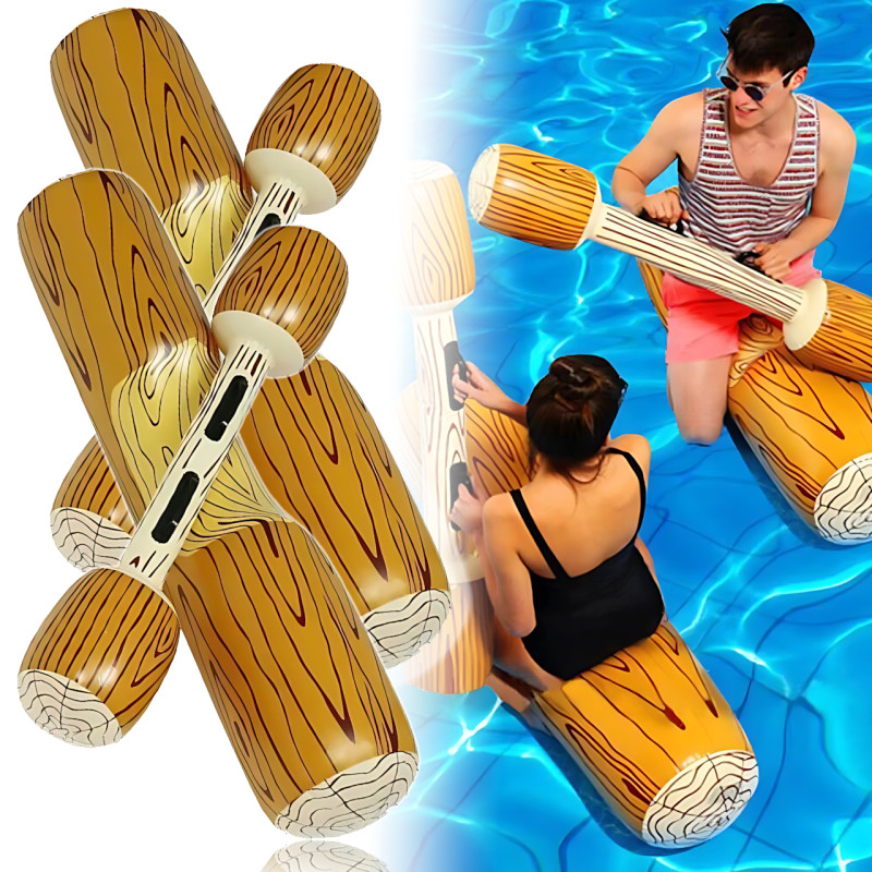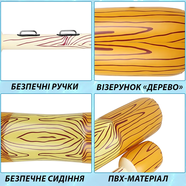 Надувная водная игрушка MA552 - набор для игры в воде с 2 плотами и веслами, 140×35 см, для взрослых и детей 6+, ПВХ, для бассейна, вечеринок, активного отдыха, стиль «деревянное каноэ»