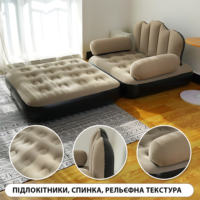 Надувное кресло диван кровать 2 в 1, одноместное, 170×85×20 см, флокированное, до 160 кг, бежевое, ПВХ