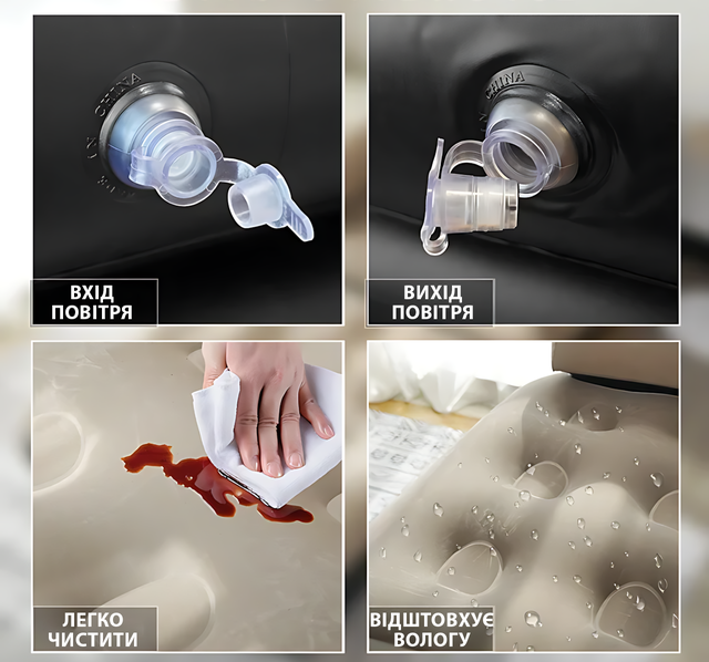 - Особенности: Складной, влагостойкий, портативный, надувной, с подлокотниками;