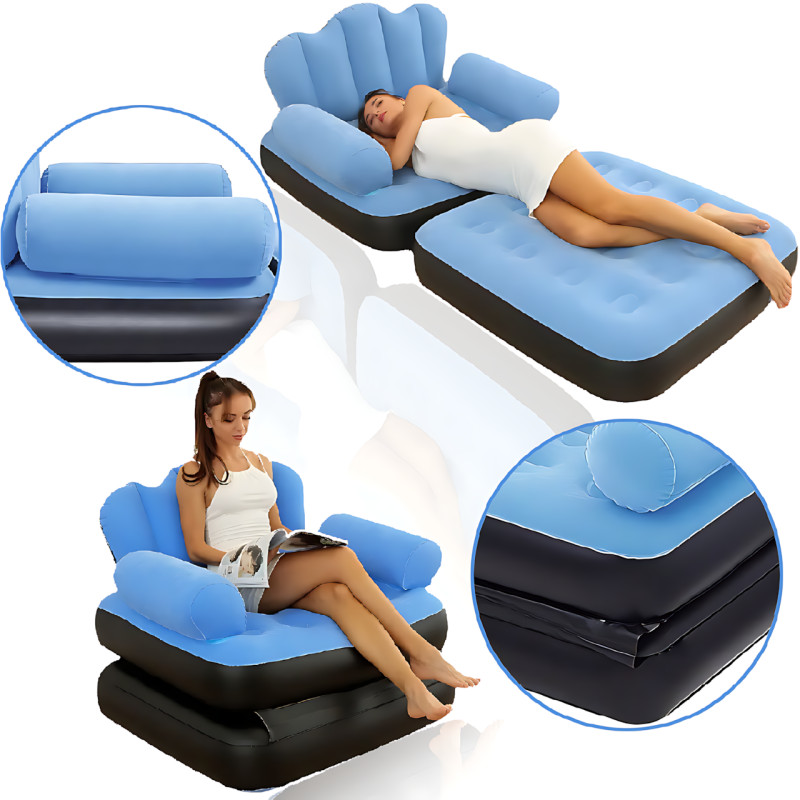 Этот стильный и удобный надувной диван-кровать идеально подходит для отдыха дома или на природе. Изготовленный из прочного ПВХ с флокированным покрытием, он обеспечивает комфортное сидение и сон. В разложенном виде диван превращается в полноценную кровать, а в сложенном — в удобное кресло.