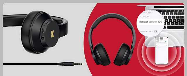 - Накладные Bluetooth-наушники Monster Mission 100;