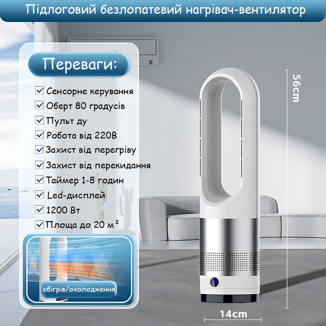 - Тип: Напольный безлопастной кулер-вентилятор / тепловентилятор;