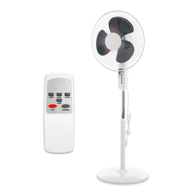 Вентилятор Wimpex WX-1604 - это легкое малогабаритное устройство, которое отлично создаст комфортный ветерок в небольшом помещении. Устройство работает от сети 220 В и потребляет мощность в 100 Вт. Девайс оснащен телескопической ножкой и имеет поворотное устройство на 160 градусов. В комплект входит пульт дистанционного управления, которым можно выбрать одну из трех возможных скоростей обдува. Вентилятор оснащен защитой от перегрева и таймером.