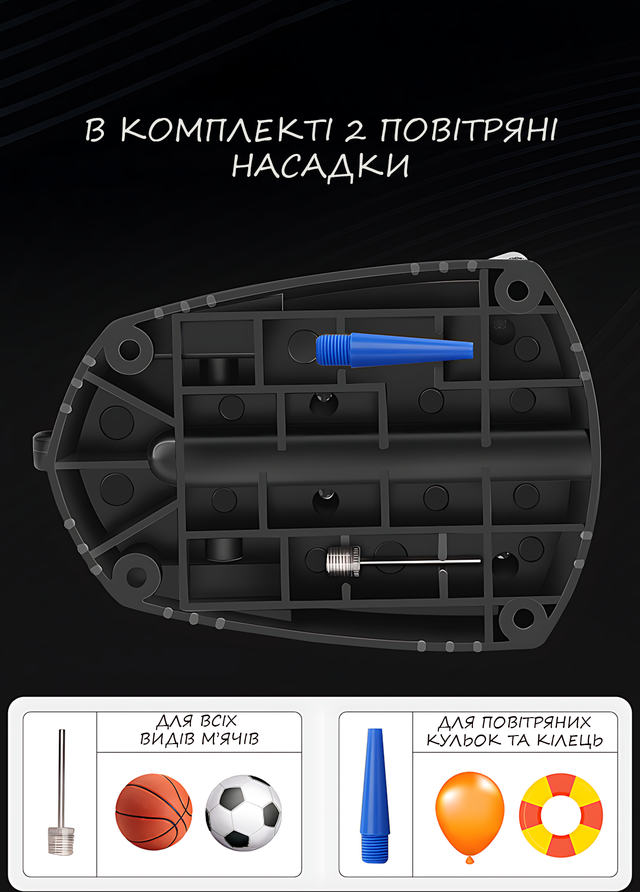 - Универсальность: Благодаря многофункциональному ниппелю, насос можно использовать для накачивания не только велосипедных шин, но и мячей, надувных бассейнов, игрушек и других надувных изделий;