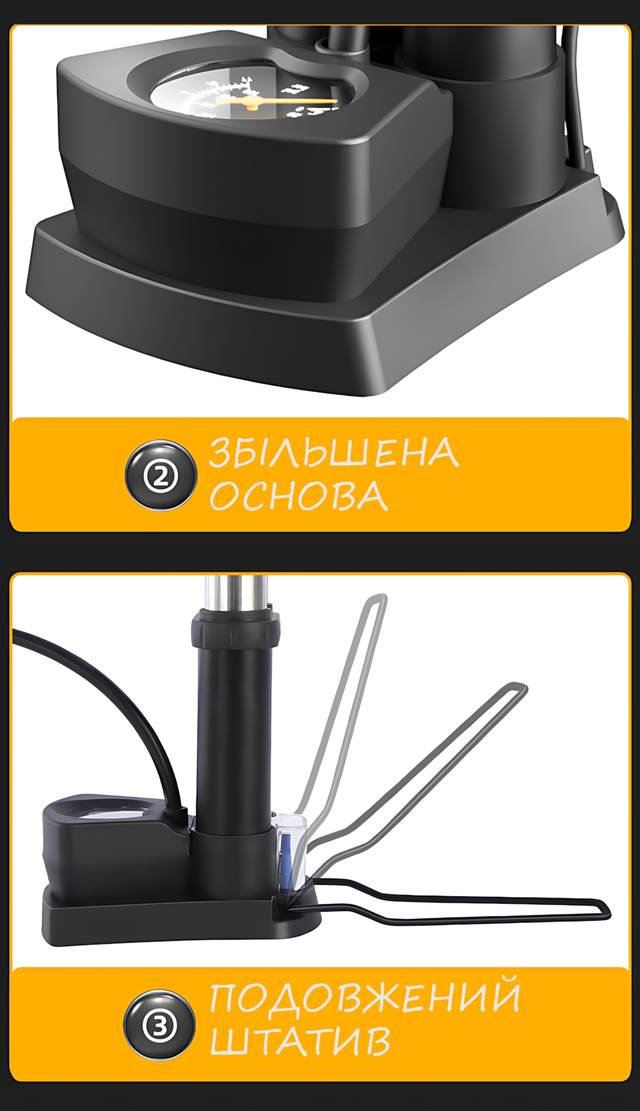 Насос ножной Air pump AND S98-2409-Y, двухцилиндровый мини-насос с универсальным нипелем и манометром