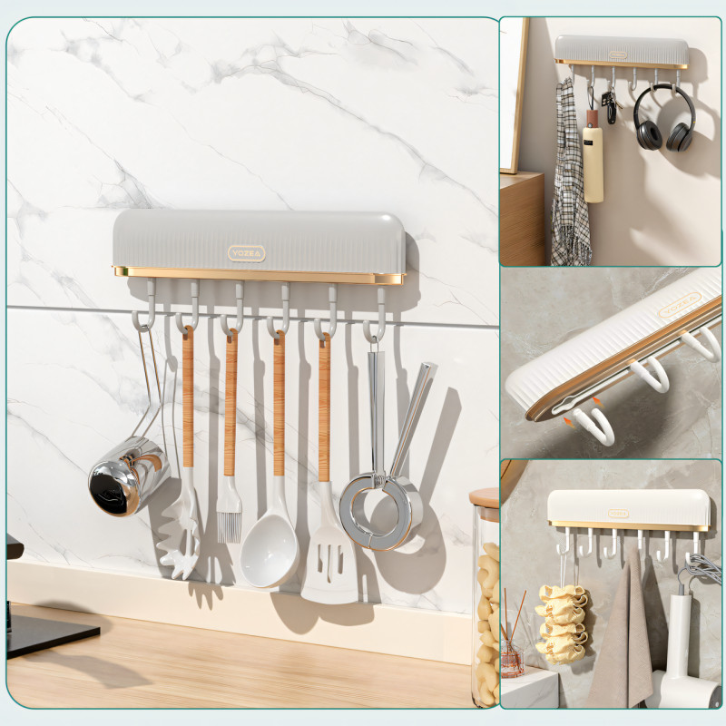 - Количество крючков: Оснащен 6 крючками, что позволяет удобно разместить различные предметы, такие как полотенца, кухонные принадлежности, ключи и многое другое;