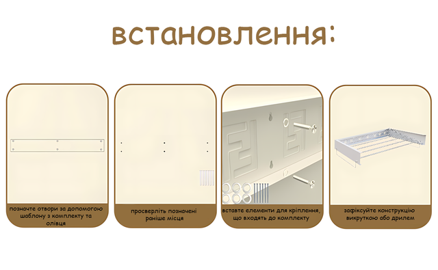- Тип крепления: дюбеля и саморезы (в комплекте);