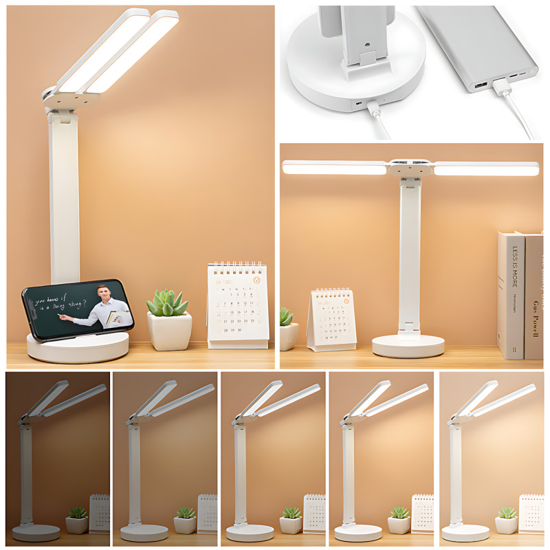 Настольная лампа со съемным аккумулятором 18650, с 2-я плафонами, сенсорным управлением, поворотом на 180°
