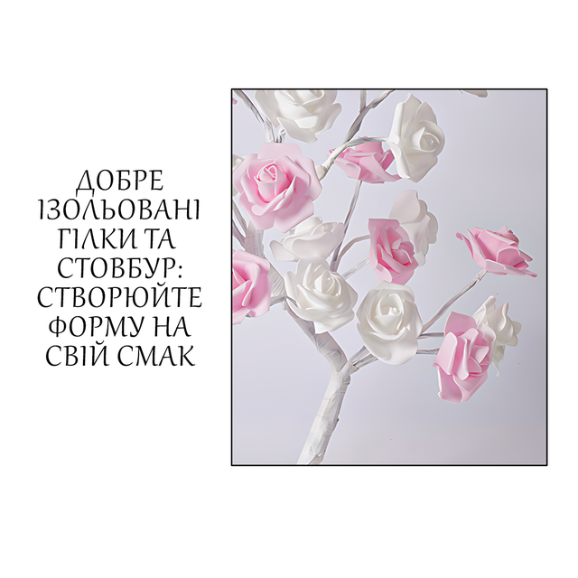 - Уникальный дизайн: Форма дерева с розами в бело-розовых тонах добавит уюта в любой интерьер;