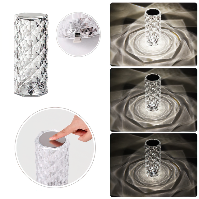 Настольная RGB лампа Crystal Rose Ambience, аккумуляторная, 5 Вт, 10 часов на одном заряде, 4 режима яркости