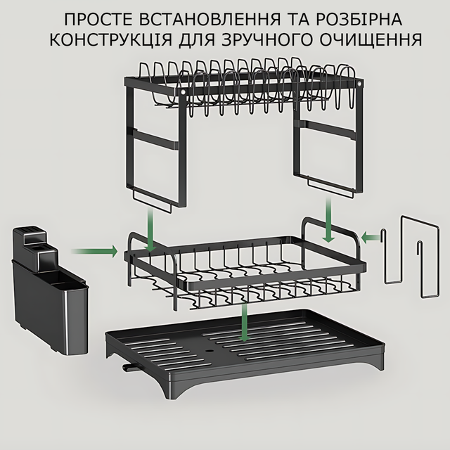 Двухъярусная настольная сушилка для посуды Escurridor Black — это стильный помощник, который экономит место, держит кухню в порядке и придаёт рабочей зоне аккуратный современный вид.