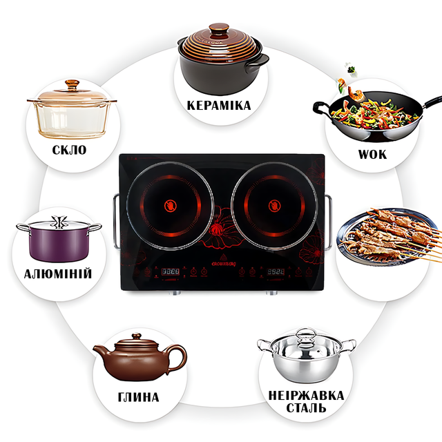 Настольная инфракрасная плита Crownberg CB-1327, 2 конфорки по 2000 Вт