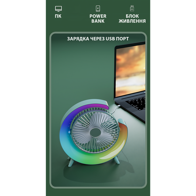 Настольный аккумуляторный вентилятор с RGB-подсветкой и поворотным механизмом