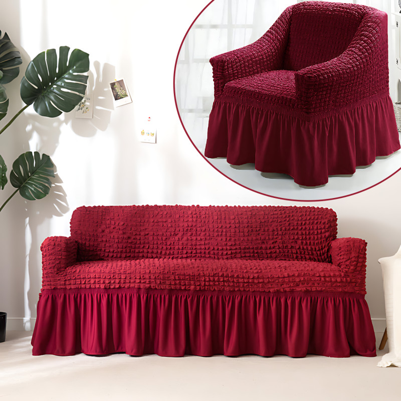 Натяжной чехол на диван и два кресла Hommy Turkey, защитная эластичная накидка на софу, универсальный размер Бордовый