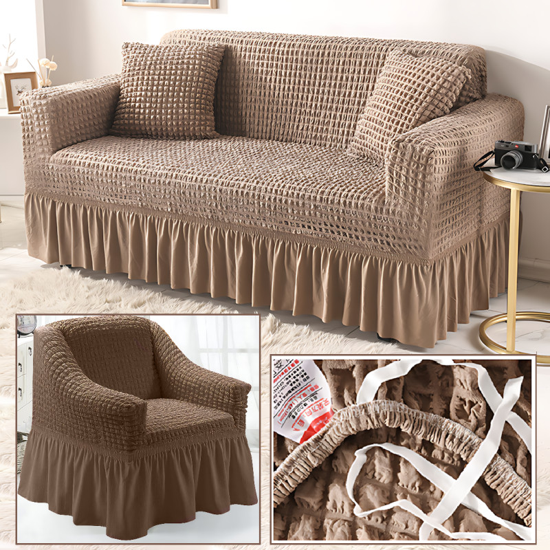 Натяжной чехол на диван и два кресла Hommy Turkey, защитная эластичная накидка на софу, универсальный размер Светло-коричневый