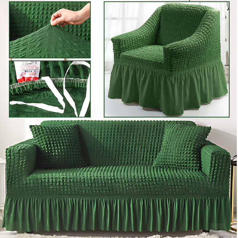 Натяжной чехол на диван и два кресла Hommy Turkey, защитная эластичная накидка на софу, универсальный размер Зеленый