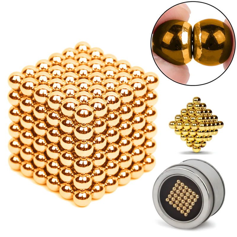 Неокуб NeoCube 5 мм золотой — магнитный конструктор антистресс, 216 неодимовых шариков, головоломка для творчества и развития