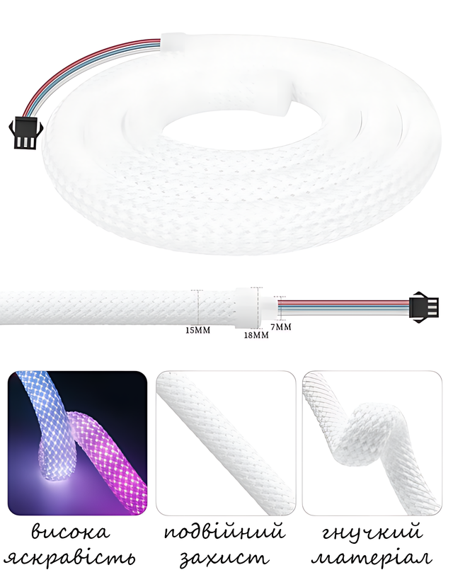 - Тип: Неоновая пиксельная светодиодная лента-шнур;