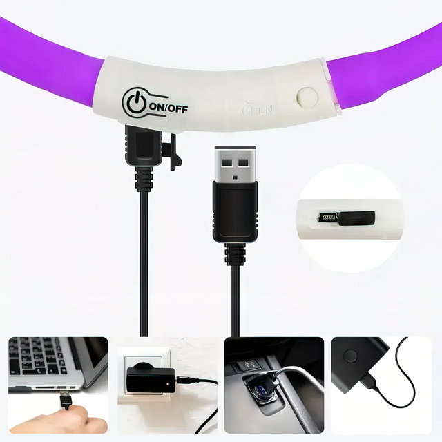 Простая застежка на кнопке обеспечивает быстрое и безопасное одевание, а встроенный USB-аккумулятор с легкостью заряжается для продолжительного использования. Ошейник имеет три режима подсветки - постоянное свечение, мигание и частое мерцание, которые легко переключаются кнопкой. Подсветка служит как дополнительный аксессуар к основному ошейнику и добавляет стиль и безопасность вашим прогулкам в темное время суток.