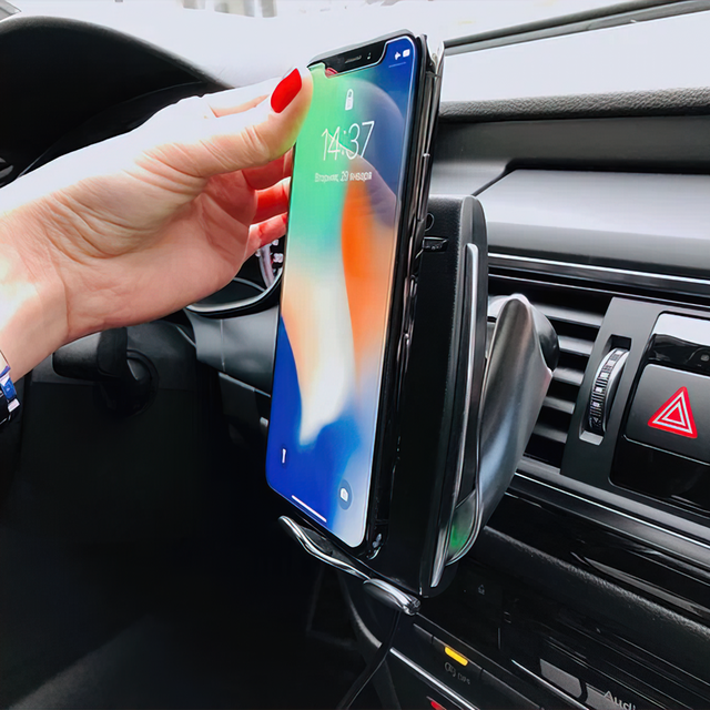 Автомобильный держатель с беспроводной зарядкой Smart Sensor pro S5 Aluminium - это современное и удобное устройство для использования вашего смартфона в автомобиле. Он легко крепится к решетке воздуховода и обладает шарнирным механизмом, который позволяет вам настроить его под удобным углом, а также перевести в горизонтальное положение.