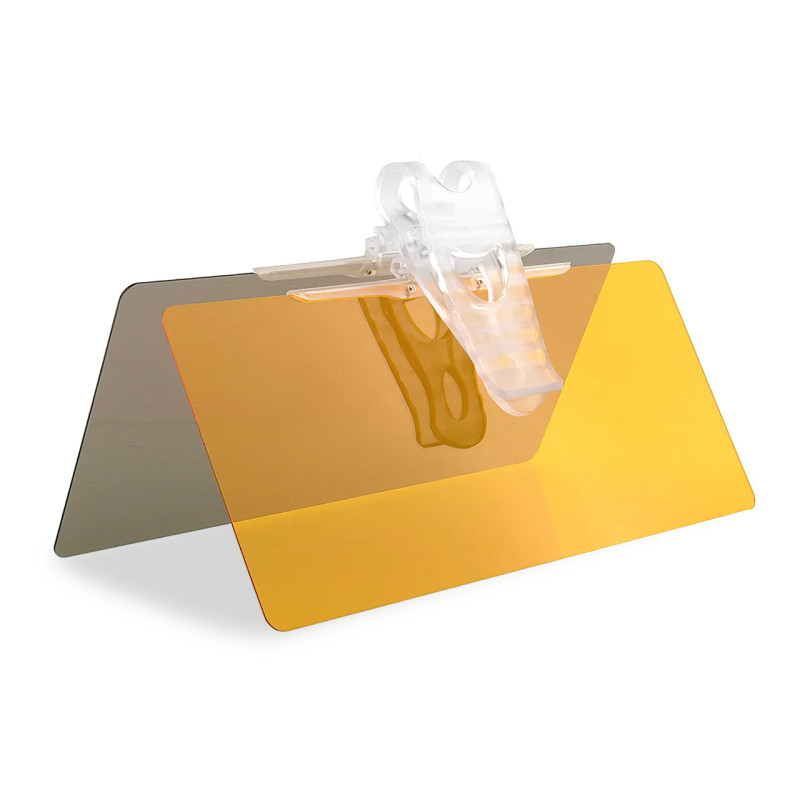 Солнцезащитный Антибликовый козырек HD Vision Visor предназначен для установки в автомобиле и обеспечивает водителю комфортное вождение в различных условиях освещения. Козырек эффективно защищает глаза от слепящих лучей солнца днем и ярких фар вечером, а также улучшает видимость при движении в тумане. Изготовлен из двух пластиковых пластин серого и желтого цвета для дневного и ночного вождения соответственно. Легко крепится к штатному козырьку автомобиля и не мешает управлению. Этот козырек является надежным помощником для водителей, предоставляя улучшенную видимость и защиту глаз от вредного ультрафиолетового излучения и слепящего света фар.