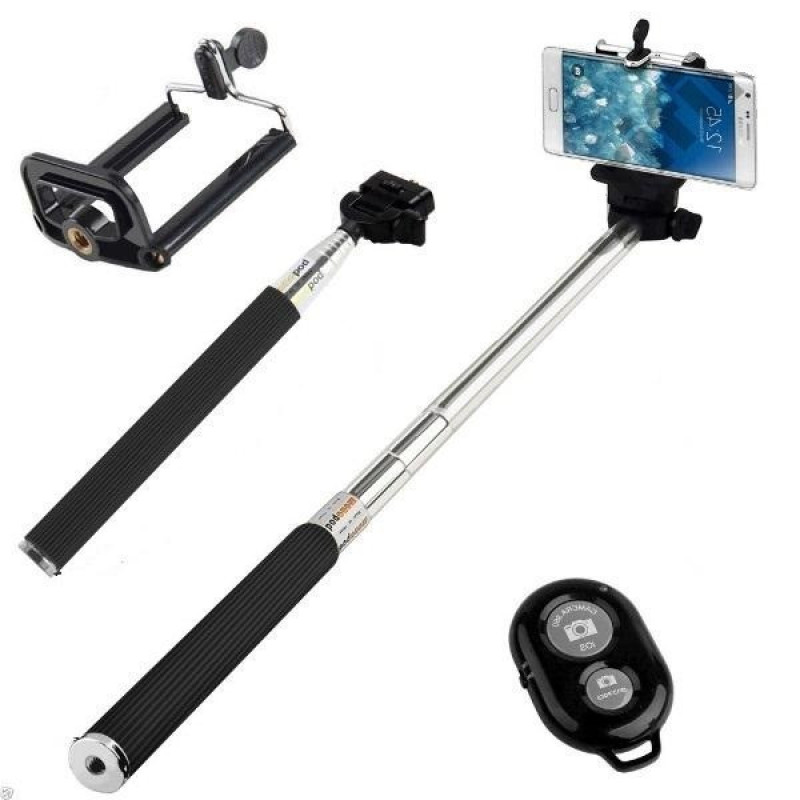 Монопод палка с Bluetooth пультом для селфи Монопод штатив палка с пультом для селфи Фотография это запечатление удачных моментов вашей жизни: веселых приключений, смешных кадров и просто хорошие снимки. Вспомните как раньше доводилось просить прохожего сфотографировать Вас с семьей или друзьями на фоне, какого ни будь события. Теперь можно забыть об этом ведь в эру новшеств и технологий появилась возможность сделать собственный снимок абсолютно самостоятельно благодаря изобретению ― монопода палки для селфи. Монопод штатив палка с кнопкой для селфи ― это универсальный ручной штатив для телефонов, исполненный в виде телескопической трубки. Телефон устанавливается на монопод за счет специального надежного крепления, которое расположено в конце самого штатива. Этот прочный стальной штатив имеет удобную прорезиненную ручку, сверху к нему прикручивается универсальный держатель для телефона. В этом штативе нет конопки для фото, а в комплекте идет пульт, который подключается к телефону через Bluetooth соединение.