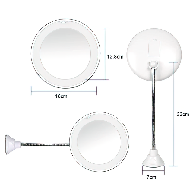 - Гибкая ножка: гибкая ножка зеркала позволяет регулировать его положение под нужным углом, обеспечивая максимальный комфорт при макияже.