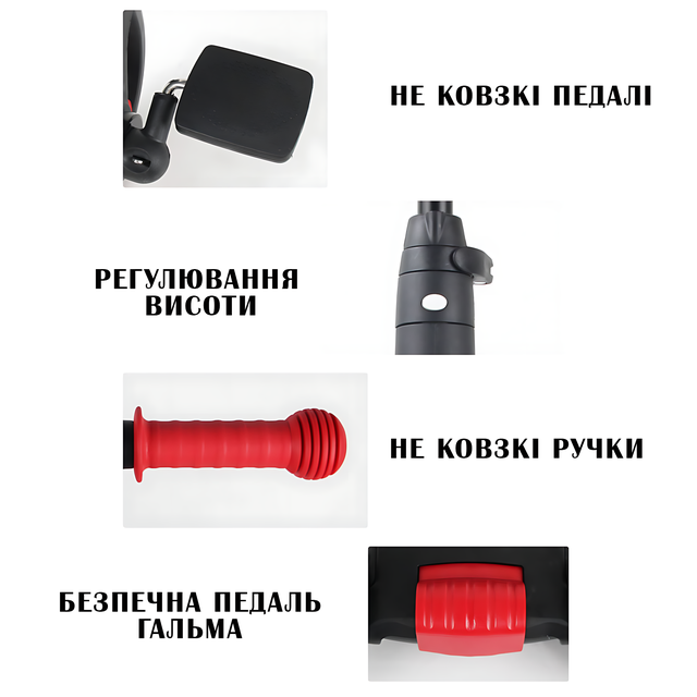 - Регулируемая высота руля и телескопическая ручка для родителей;